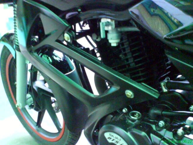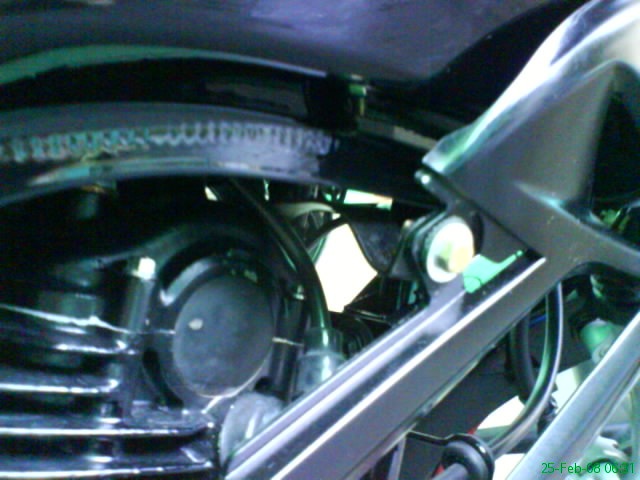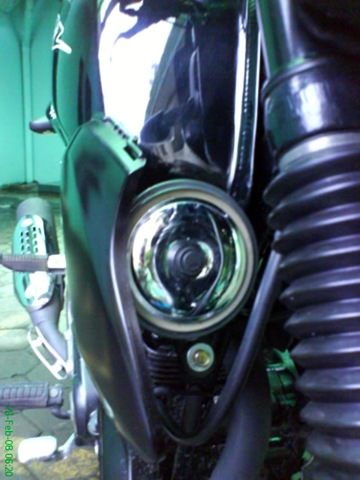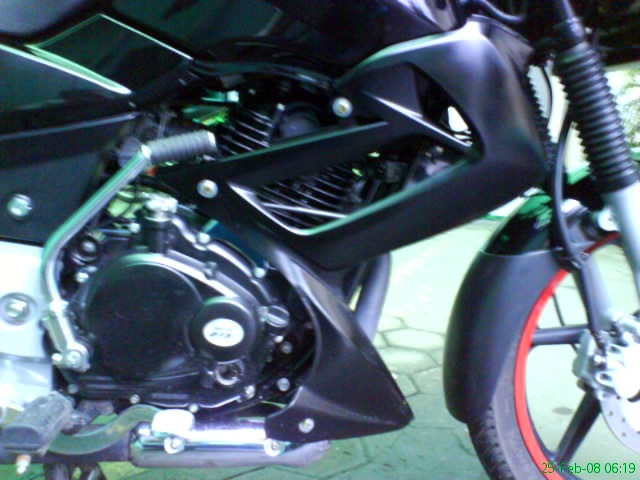 Melalui YM sekitar dua minggu yang lalu Juned meminta nomor telpon Pak Haris. Katanya, dia tertarik untuk memasang fairing FU di Pulsar hitamnya yang masih greng. Hmm... kalau Si Ngorok nggak pakai box saya pun akan pasang fairing FU. Sekarang saya masih nimbang-nimbang apa pantes kalau motor dengan box bergaya sport. Yakin sih, tampangnya bakalan lucu.